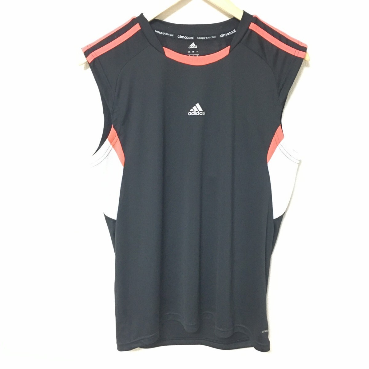 > W252【adidas】 アディダス タンクトップ ノースリーブ メッシュ サッカー バスケ ドライ インナー ブラック メンズ サイズ L /fa