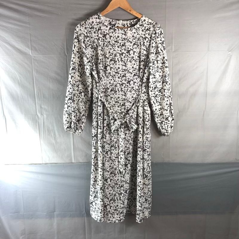 > トゥーブロッサム to blossom ワンピース ロング 長袖 小花柄 リボン紐 袖ゴム 黒 白系 2025083000165