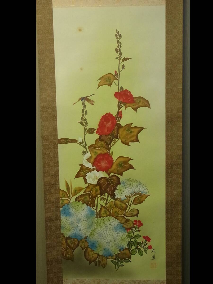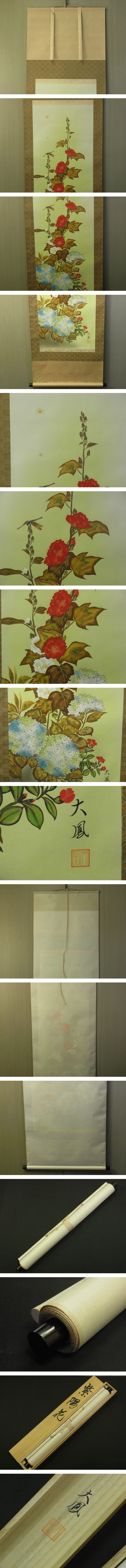 - 【模写】 t1878 蔵出 掛軸 小川大鳳 紫陽花 絹本 共箱 日本画 花 風景 あじさい 書画骨董