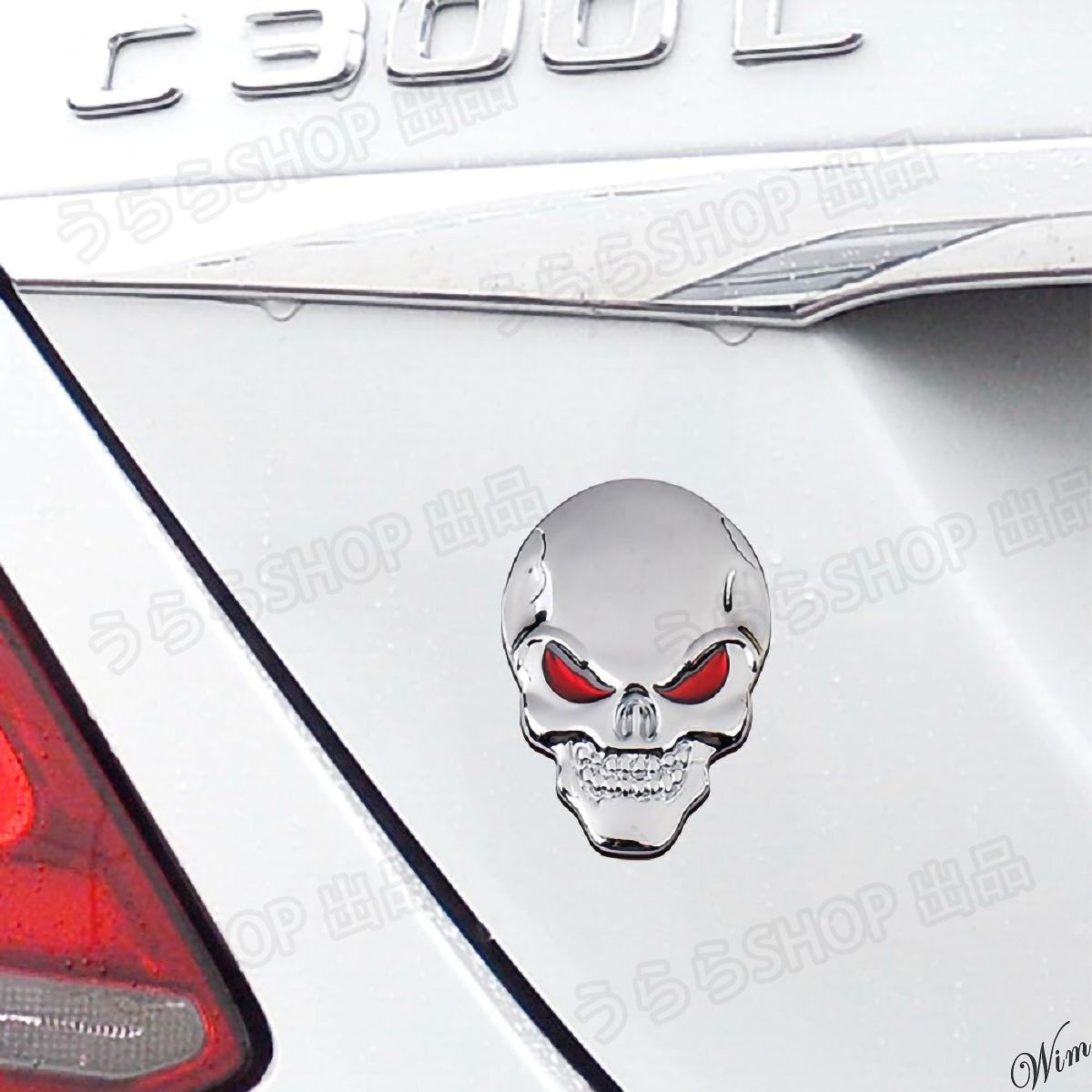 > ◆存在感抜群◆ エンブレムステッカー スカルデザイン メッキコーティング 重厚感 簡単取付 自動車 オートバイ アクセサリー xhw0109
