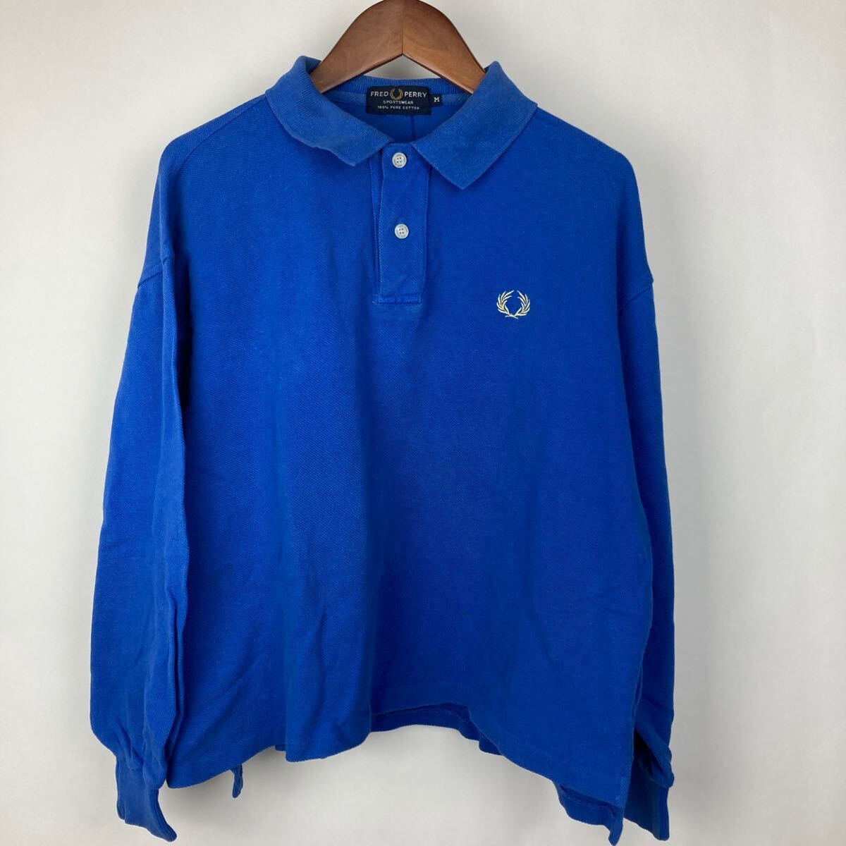 - ポロシャツ メンズ 青 ブルー Mサイズ 長袖 秋服 レディース 男性用 FRED PERRY スポーツウェア 100%コットン 刺繍 無地 シンプル