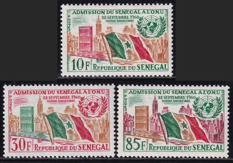 - ak7127 セネガル 1962 国連 #207-9 ヒンジ跡あり