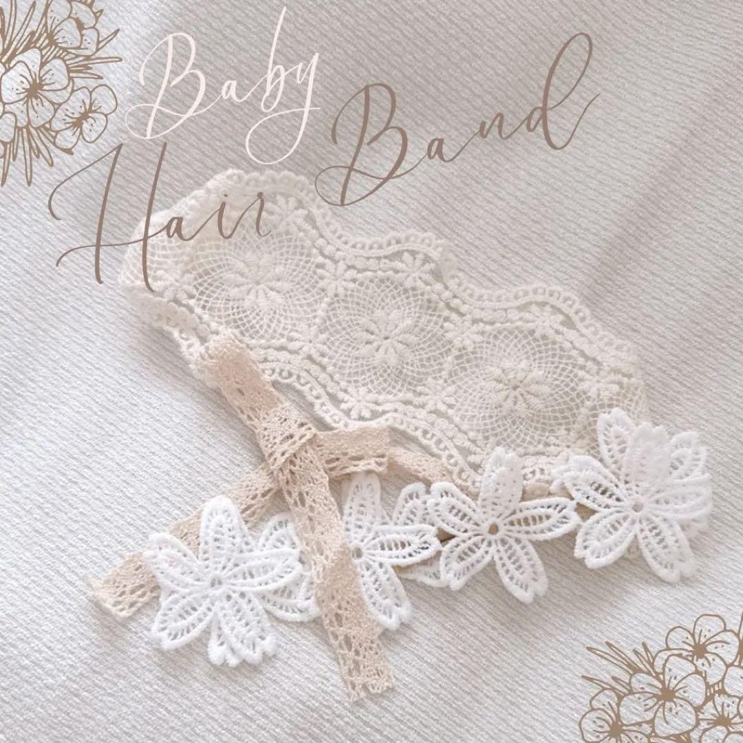 - ベビー ヘアバンド ヘッドバンド レース リボン フラワー お花 くすみカラー