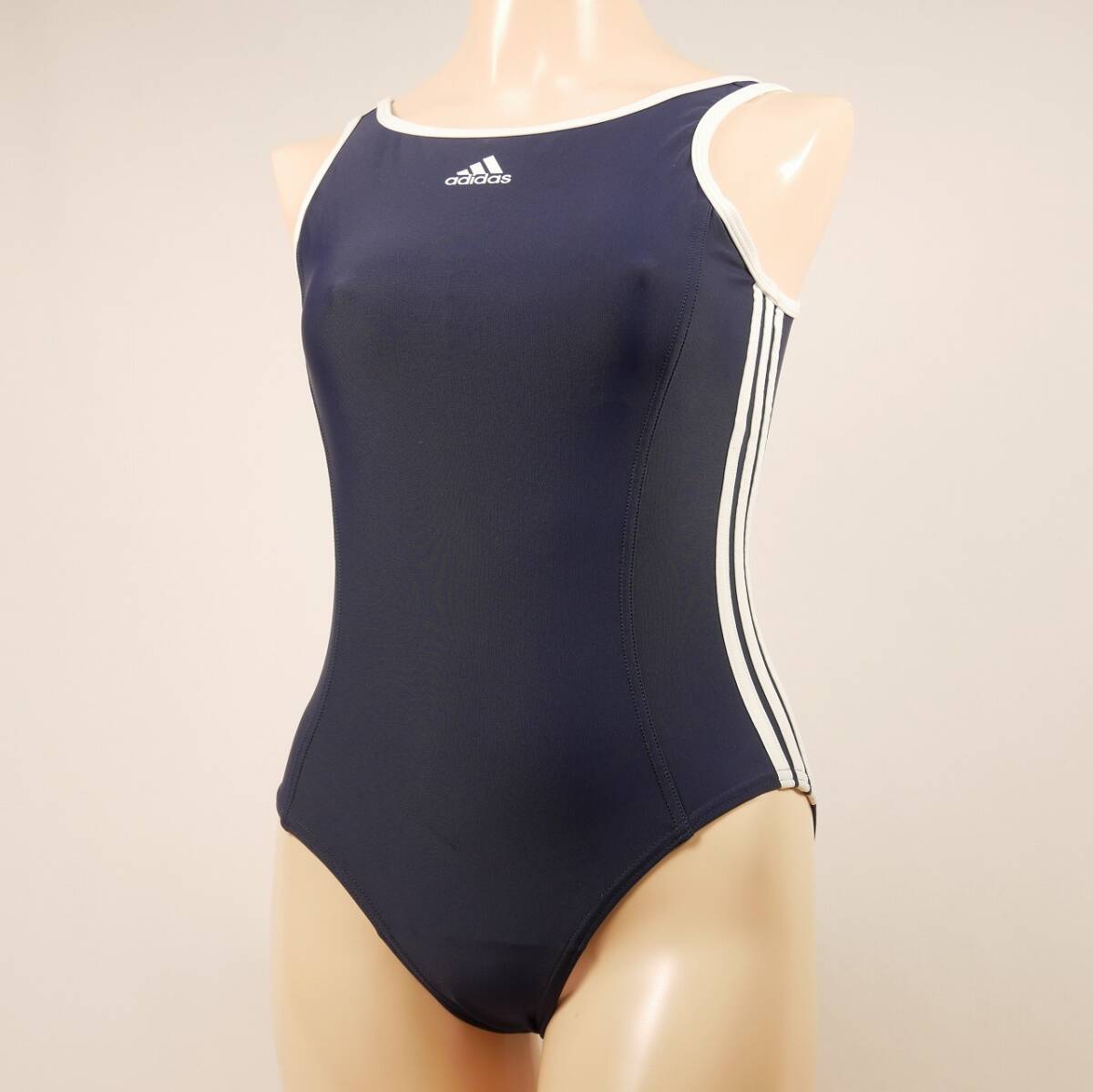 > 7716 adidas レディース水着 シンプルデザインワンピース水着 160サイズ ネイビー系 匿名配送