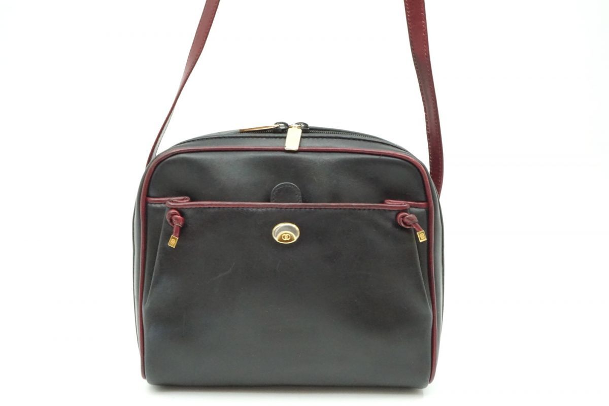 - オールド グッチ ヴィンテージ ショルダーバッグ ダブルファスナー スクエア レザー 黒 ブラック GUCCI 3658h