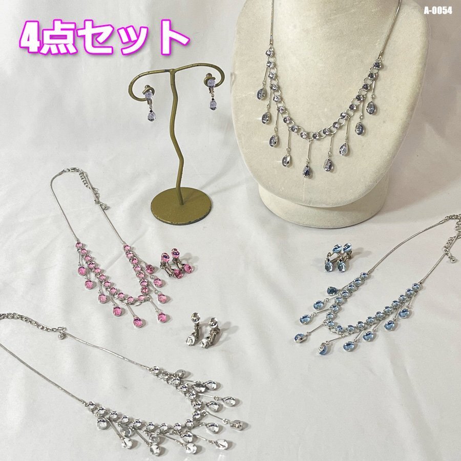 - 送料無料!! アクセサリー イヤリング ネックレス 4点セット ブルー ピンク クリア パープル ドロップ型 ◇YJ-0123