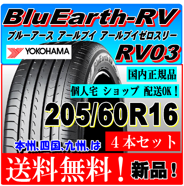 - 205/60R16 96H 送料無料 新品 25年製 在庫あり 4本価格 即納可 ヨコハマ ブルーアース RV03 正規品 個人宅 ショップ 配送OK