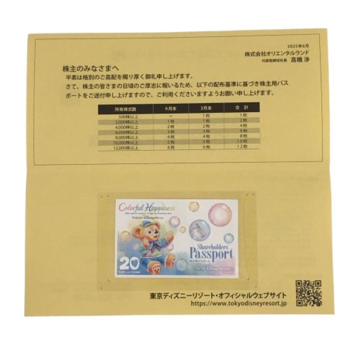 - ■【オリエンタルランド】東京ディズニーリゾート 株主用パスポート 有効期限2026.6.30★11996