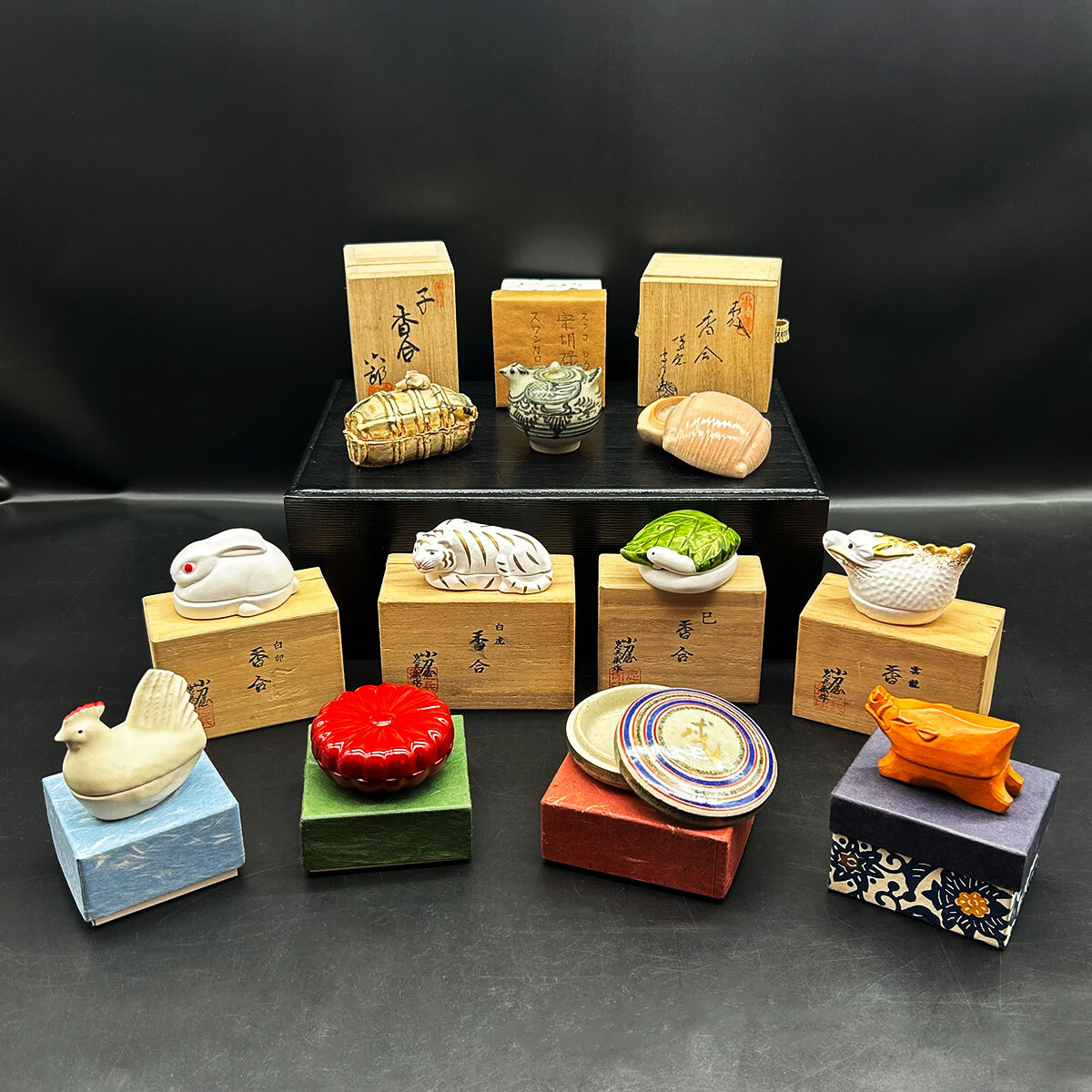 - ★香合 11点 まとめ売り / 金子信彦 / 忠兵衛印 / 六郎窯 渡辺六郎 / 宗胡録 / 茶道具 / 香炉 / 作家物 / 菊 / 猪 / 干支 / 龍 卯 虎 巳