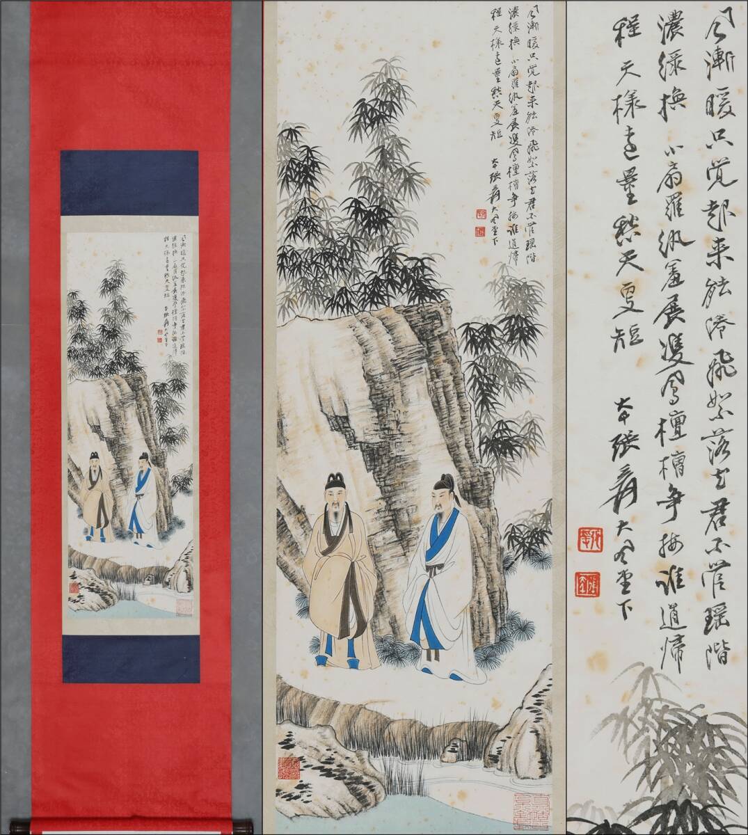 - 古美術 掛け軸 中国・近現代 「張大千書」 紙本 【李杜詩意図】 立軸 書道 巻き物 肉筆保証 唐物 古画 画心92x31cm LT-250988