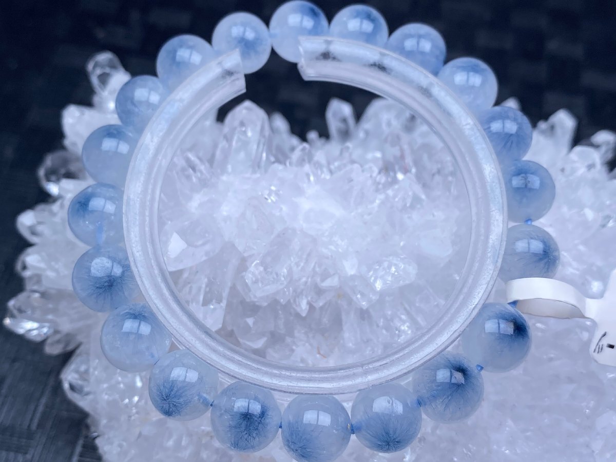> 即決 0616k541 天然石★【45Aブルーフラワートルマリンインクォーツ】★ブレス 9.5-10mm(新品)