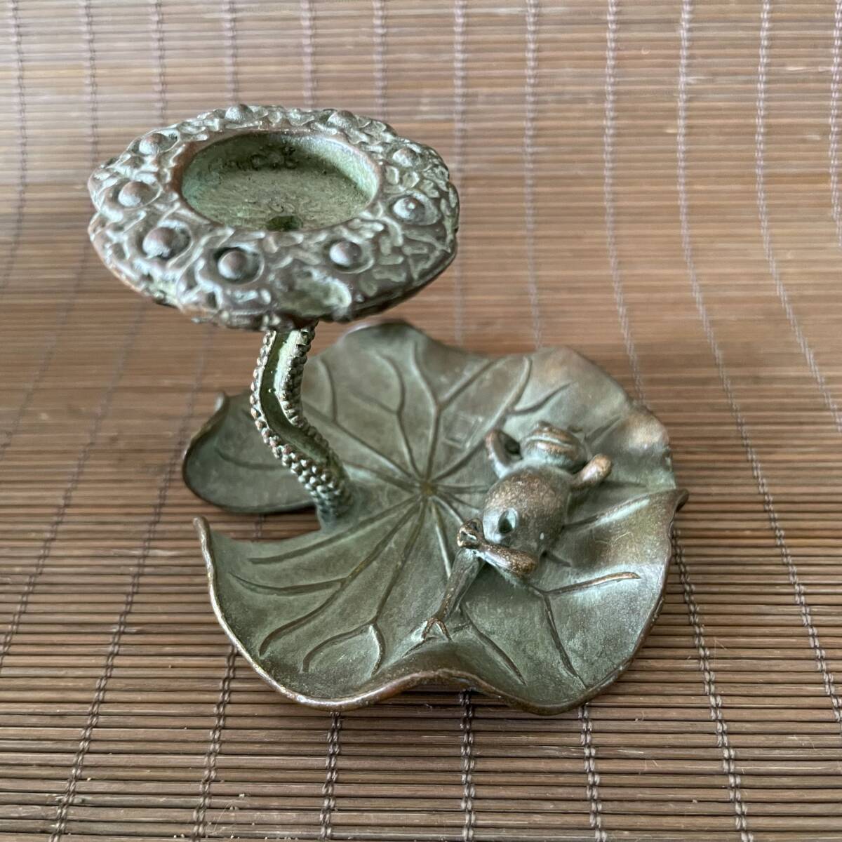 - £‰ 美術品 ‰£ 貴重希少 紫銅製 蓮葉ガエル 線香炉 茶寵 茶道品 置物