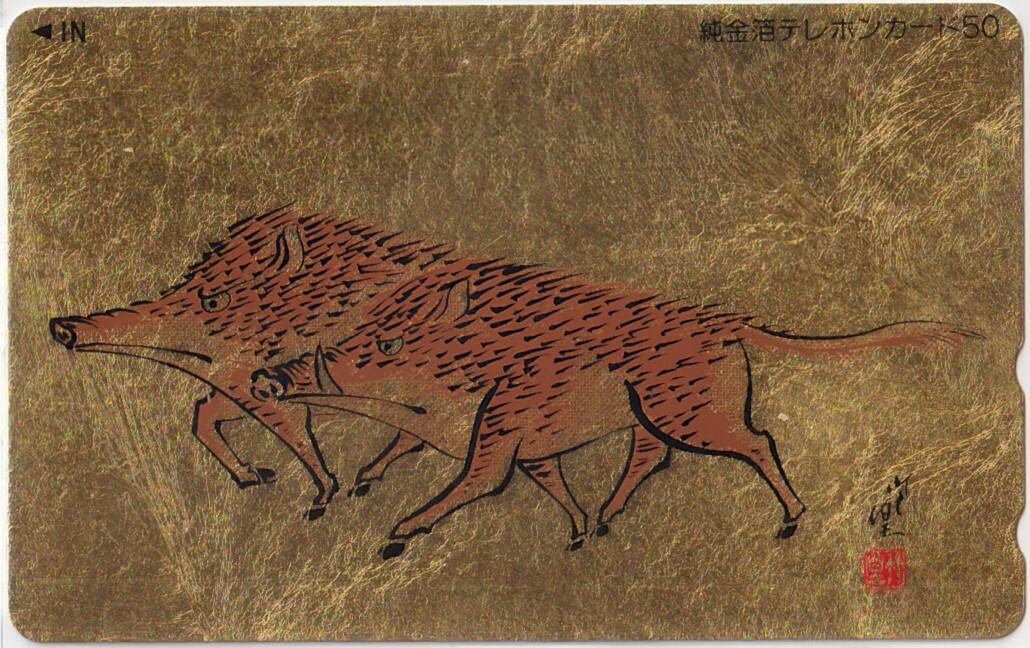 - =猪 亥= 「純金箔〜毛茶色」販売テレカ #w
