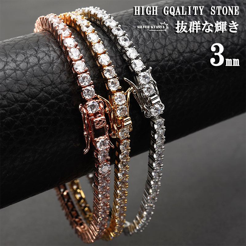 > (ローズゴールド、21cm) B系 ブレスレット テニスブレスレット ゴールド 金 シルバー 銀 テニスチェーン 18k gp