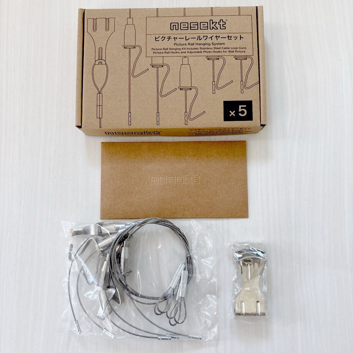 - nesekt ピクチャーレールワイヤーセット ステンレス製 スライド式フック 高さ調整可能 国内強度試験済 (0.5m / ワイヤー5本セット)