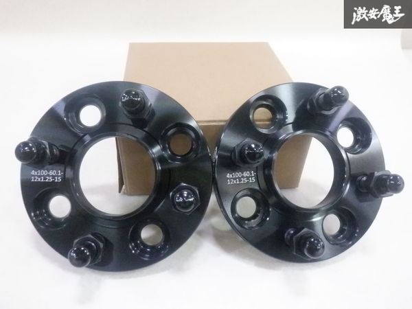- 【未使用】 社外 15mm ワイドトレッドスペーサー ワイトレ 2枚 ハブリング一体 PCD100 4H ハブ径60.1mm M12×P1.25 日産 マーチ 棚2F-M-4