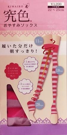 > 新品衣類★『究色 おやすみソックス ピンク×グレー 着圧靴下 ルームウエア オープントゥー ボーダー 日本製 22~25センチ』★