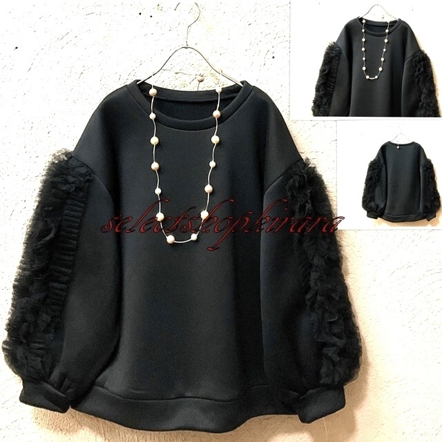 - 2025新作☆暖か裏起毛☆袖チュールフリルスウェットプルオーバー☆F