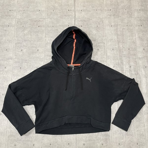 - PUMA レディース クロップド丈 ハーフジップ パーカー ロゴジッパー プーマ フーディー フーデッド スウェット ロゴプリント 石瀬7354