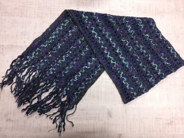 > レトロ オールド 古着小物 クラシック オールド ラメ糸 ローゲージニット フリンジマフラー レディース アクリル100% 青/紫