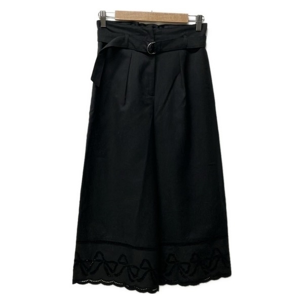 > エムズグレイシー M'S GRACY パンツ サイズ40 M - 黒 レディース クロップド(半端丈)/刺繍/リボン/スカラップ 美品 ボトムス