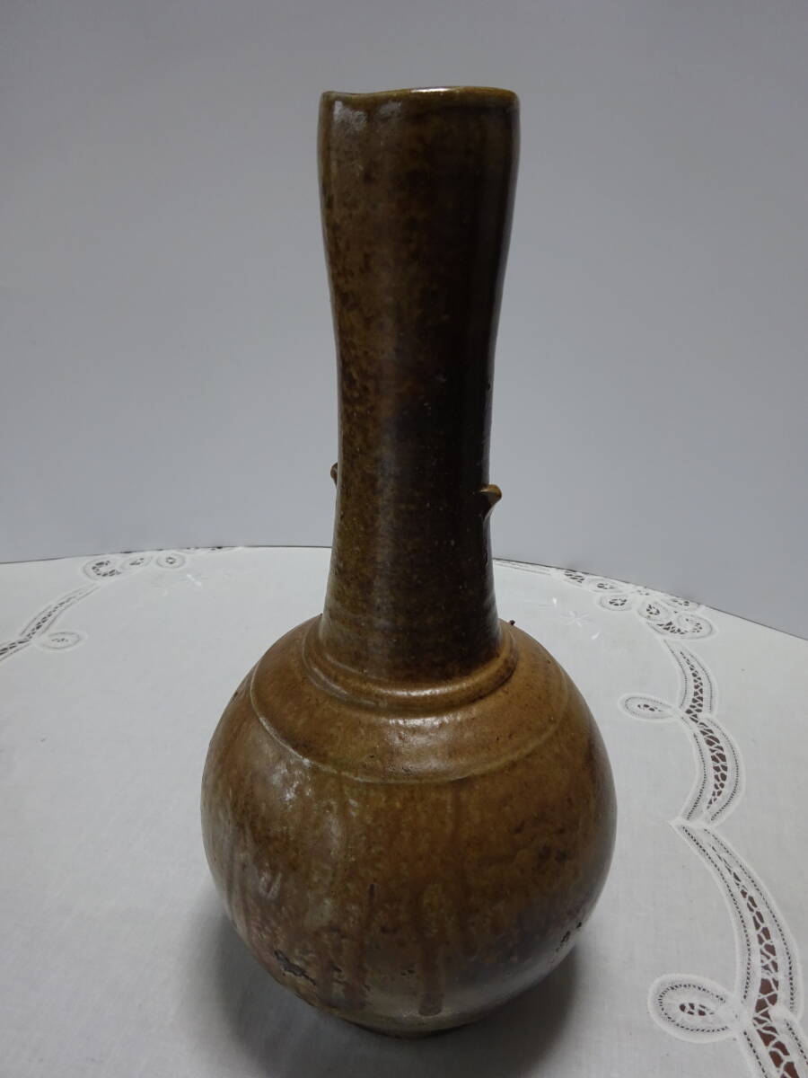 - 備前焼 人気実力作家 馬場祥輔(師:県重要無形文化財浦上善治)★備前黄ゴマ鶴首花入れ 共箱付 花器 茶碗 壺 茶道具