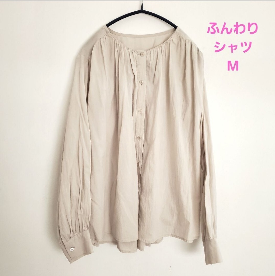 - フンワリシャツ M ベージュ juriae シャツ コットン ドレープ ブラウス 横幅ゆったり 体型カバー チュニック 綿 コットン