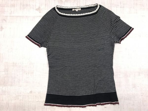 > コムサデモード COMME CA DU MODE レトロ モード ドメスティック 古着 ボーダー トップス 半袖ニットTシャツ レディース 日本製 M 濃紺