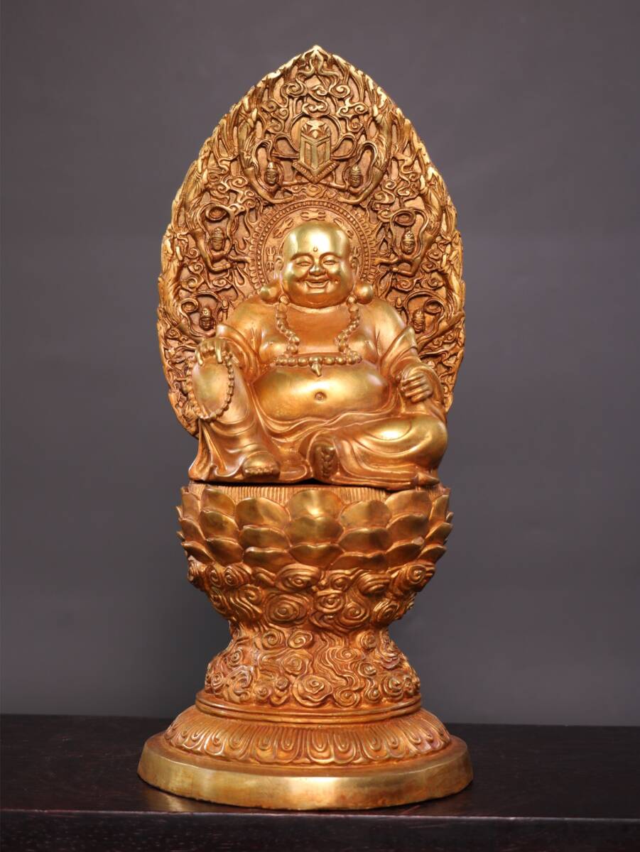 > 『館蔵珍品 銅製 塗金 彌勒仏 仏像 宗教 仏教古美術 供養品』稀少珍蔵品 古賞物 貴重物品 収蔵品 中国古美術 時代物 古董品