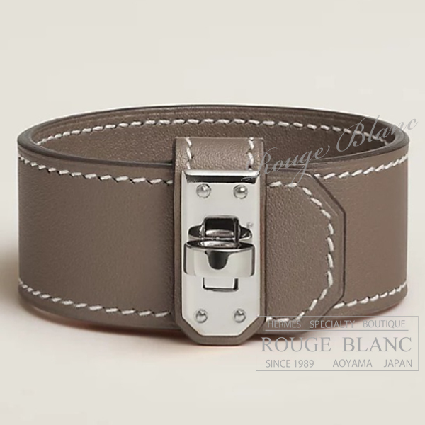 > 新品 エルメス 国内定価122,100円 レザーブレスレット バングル ”ケリー・ツイスト” PM エトゥープ シルバー金具 T2 HERMES