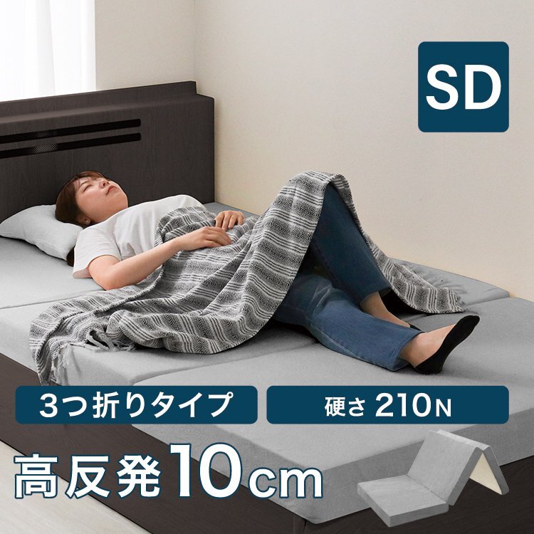 - 高反発マットレス セミダブル 極厚10cm 硬め210N 三つ折り マットレス 高反発ウレタン ごろ寝マット 敷き布団 洗えるカバー グレー