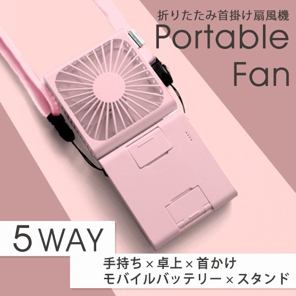 - 5WAY 首掛け扇風機 モバイルバッテリー スマホスタンド 軽量 おしゃれ 静音 ハンディファン 卓上扇風機 防災 USB充電 手持ちスタンド 便利