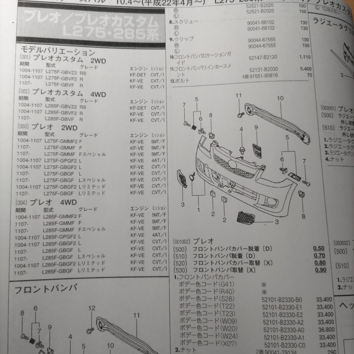 - ■■【パーツガイド】 スバル プレオ/プレオカスタム (L275・285系) H22.4~ 2013年後期版 【絶版・希少】