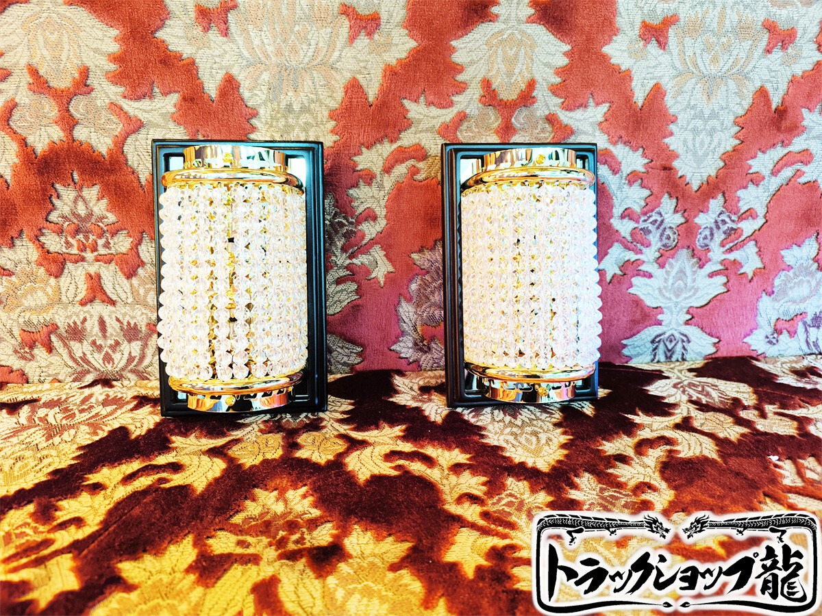 > 高品質 壁掛 シャンデリア 2個セット 木枠土台付き ゴールドメッキ 金華山サロンバス男の城トラック部品観光バス デコトラ 車内照明C0682S