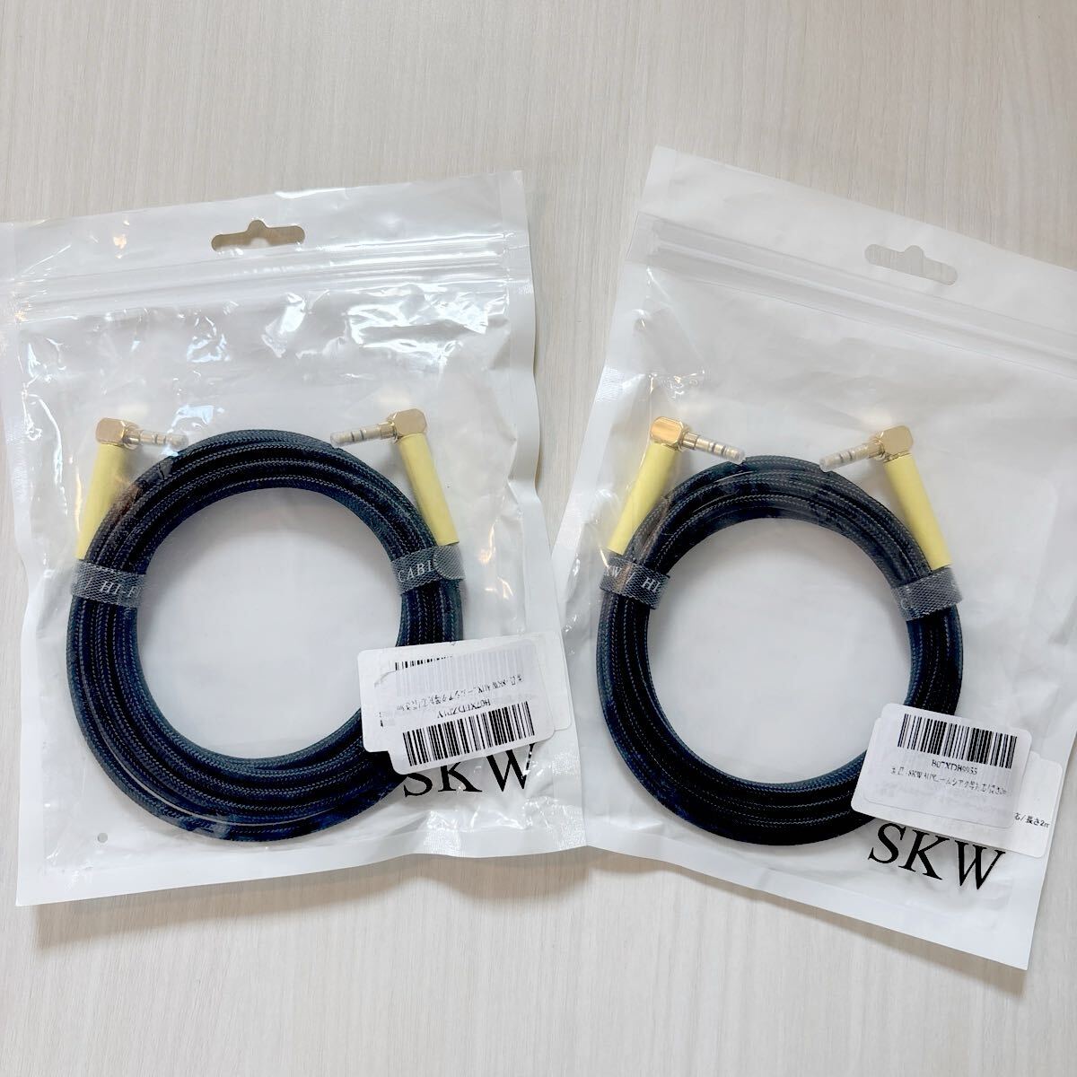 - 【2個セット】SKW AUXオーディオケーブル 3.5mm 両方L型 90度ステレオミニプラグ 車 スマホ ホームシアター等対応(長さ2m & 3m)
