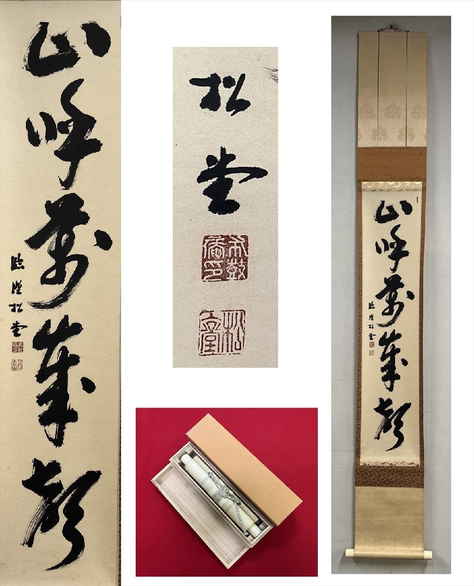 - 【千寿】妙心寺派管長 倉内松堂 山呼萬歳聲 自筆 一行書 紙本 a926◆在銘 箱 茶掛 掛軸 掛物 茶道具 同梱可 条件有 100028782