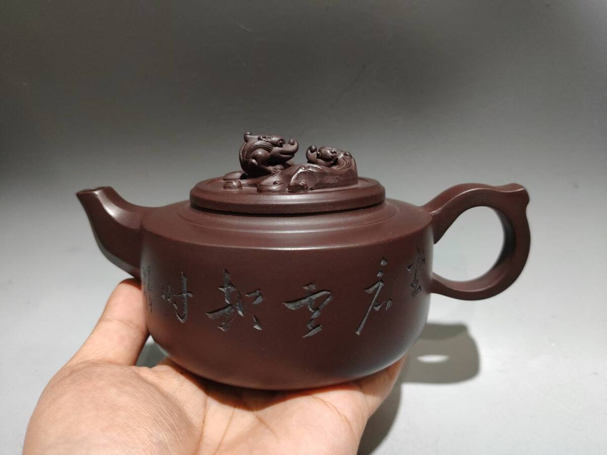 - 蔵友旧蔵出 紫砂壺 楚漢風雲壺 季益順款 原礦大水潭老紫泥 箱付 茶道品 煎茶道具 文房賞物 希少珍品 中国古玩 中国古美術品
