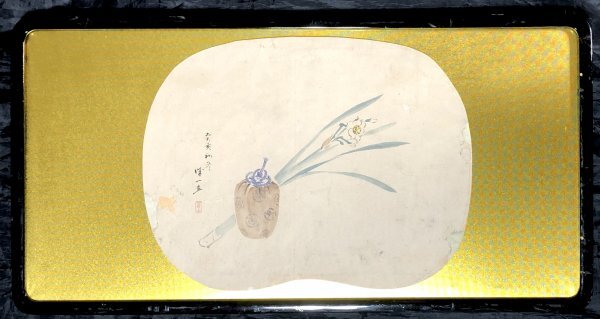 - N216【模写】鈴木誠一「茶壺に菖蒲」屏風 額 琳派 鈴木基一の次男