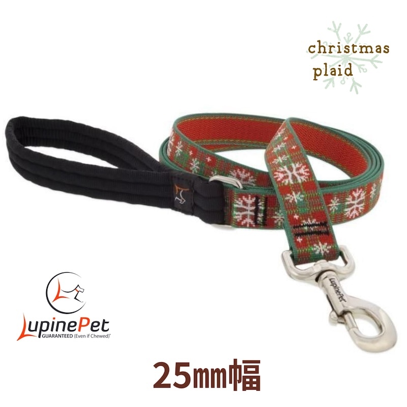 > 120cmリード クリスマスチェック柄 25mm幅 LUPINE ルパイン パッド付き アメリカ製 軽量 丈夫 Christmas Plaid