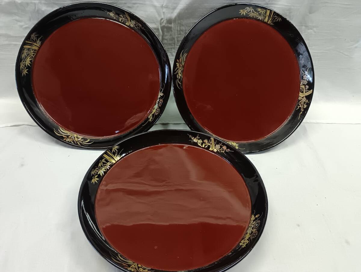- え23 菓子皿 天然木漆塗 三客 直径 29,5cm 高さ 5,8cm