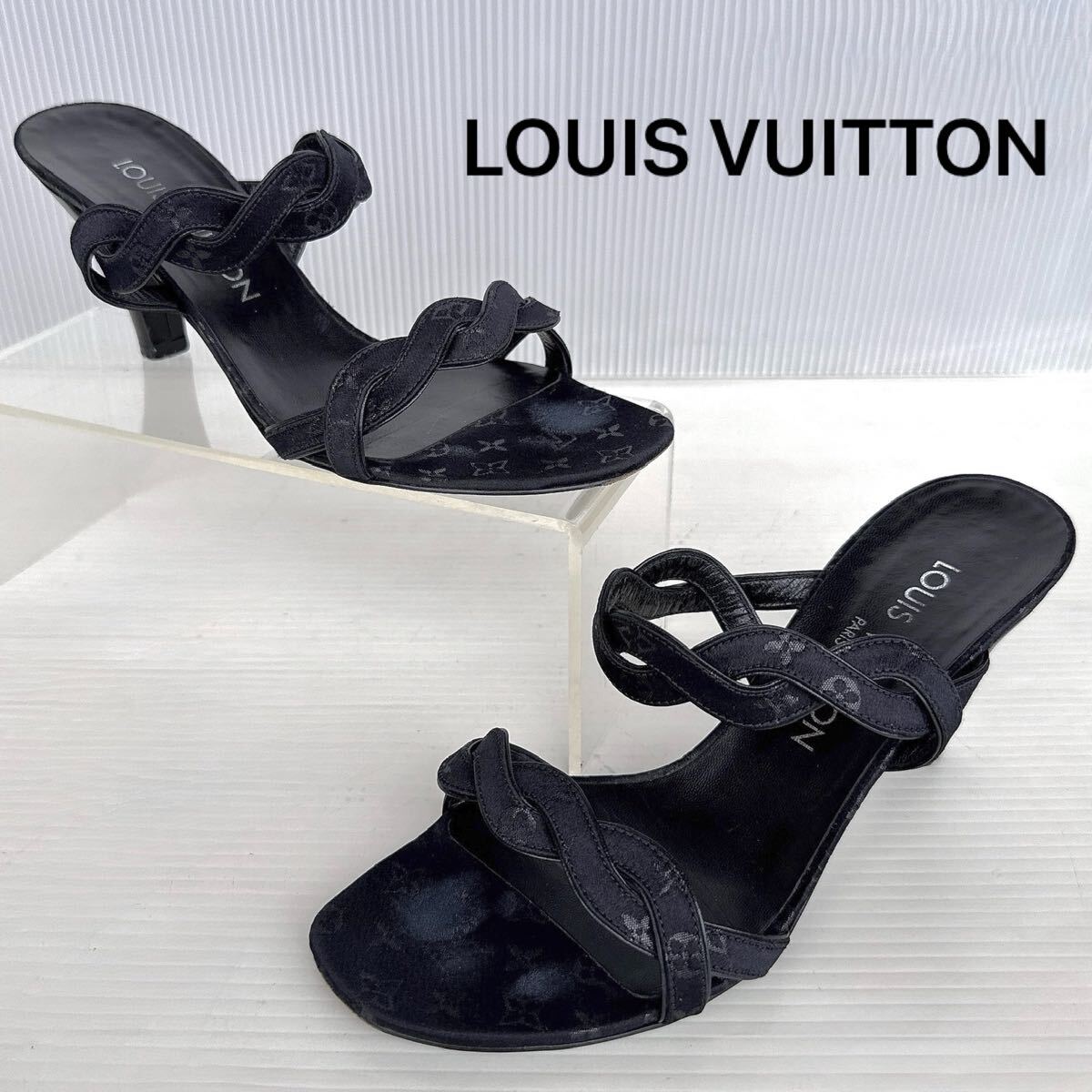 - LOUIS VUITTON LV ルイヴィトン モノグラム 総柄 オープントゥ ハイヒール ミュール パンプス サンダル 美品 レーディス シューズ 靴 35