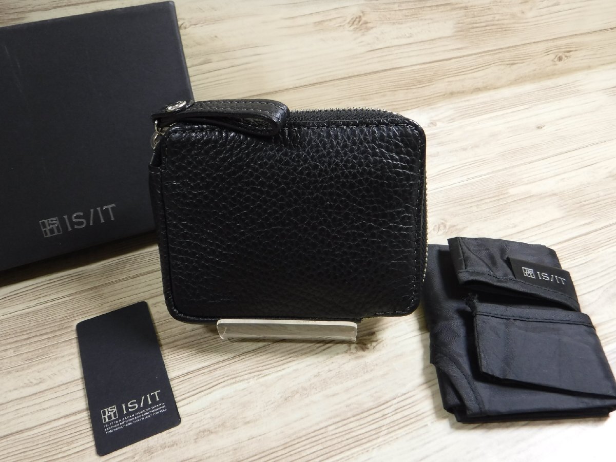 - QQ628 イズイット 新品 ZIP コンパクト財布 黒 牛革 エコバッグ付き IS/IT 967001 フジタカ製造 イケテイ製 ミニ財布 定価8800円 ブラック