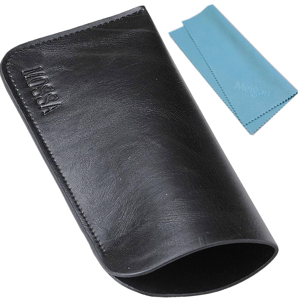 - 軽量 携帯 持ち運び 革 ソフト 大人 メンズ スリム おしゃれ MOSSA メガネケース ブラック (クロス付) meigan