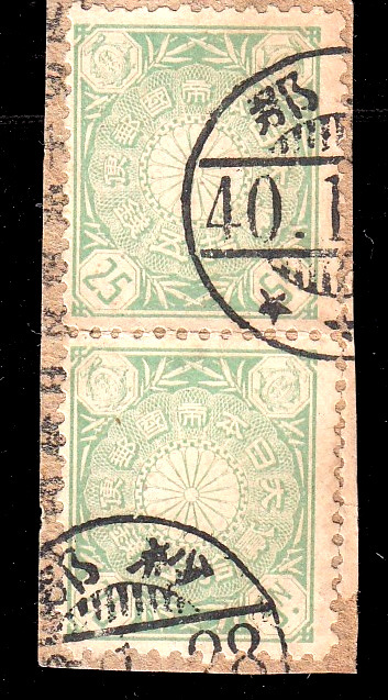 - 菊切手25銭縦ペア 千島紗那三つ星消印