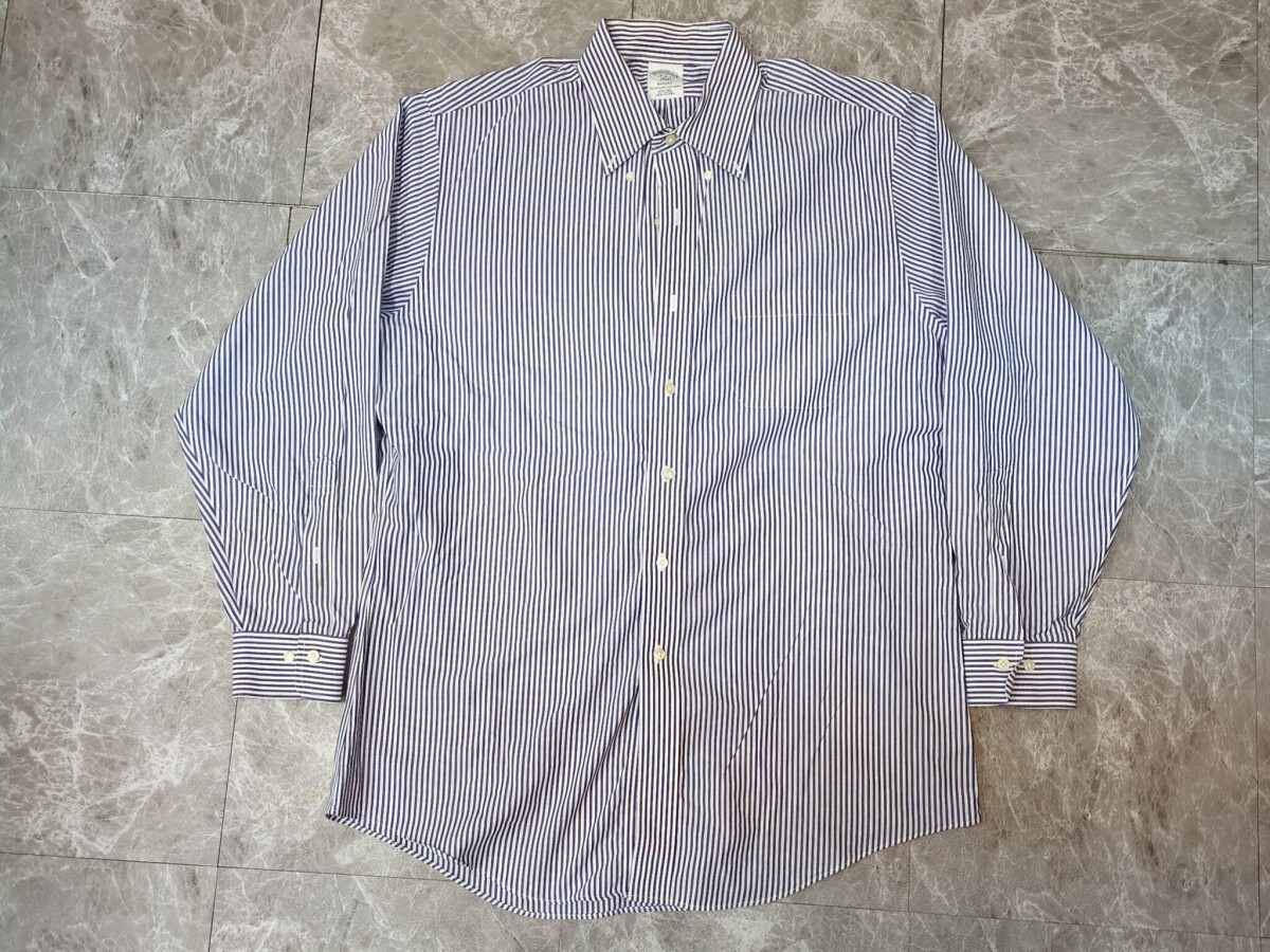 - 13.ブルックスブラザーズ BROOKS BROTHERS 長袖 ストライプシャツ REGENT ボタンダウン 16- 群青色系白 x105