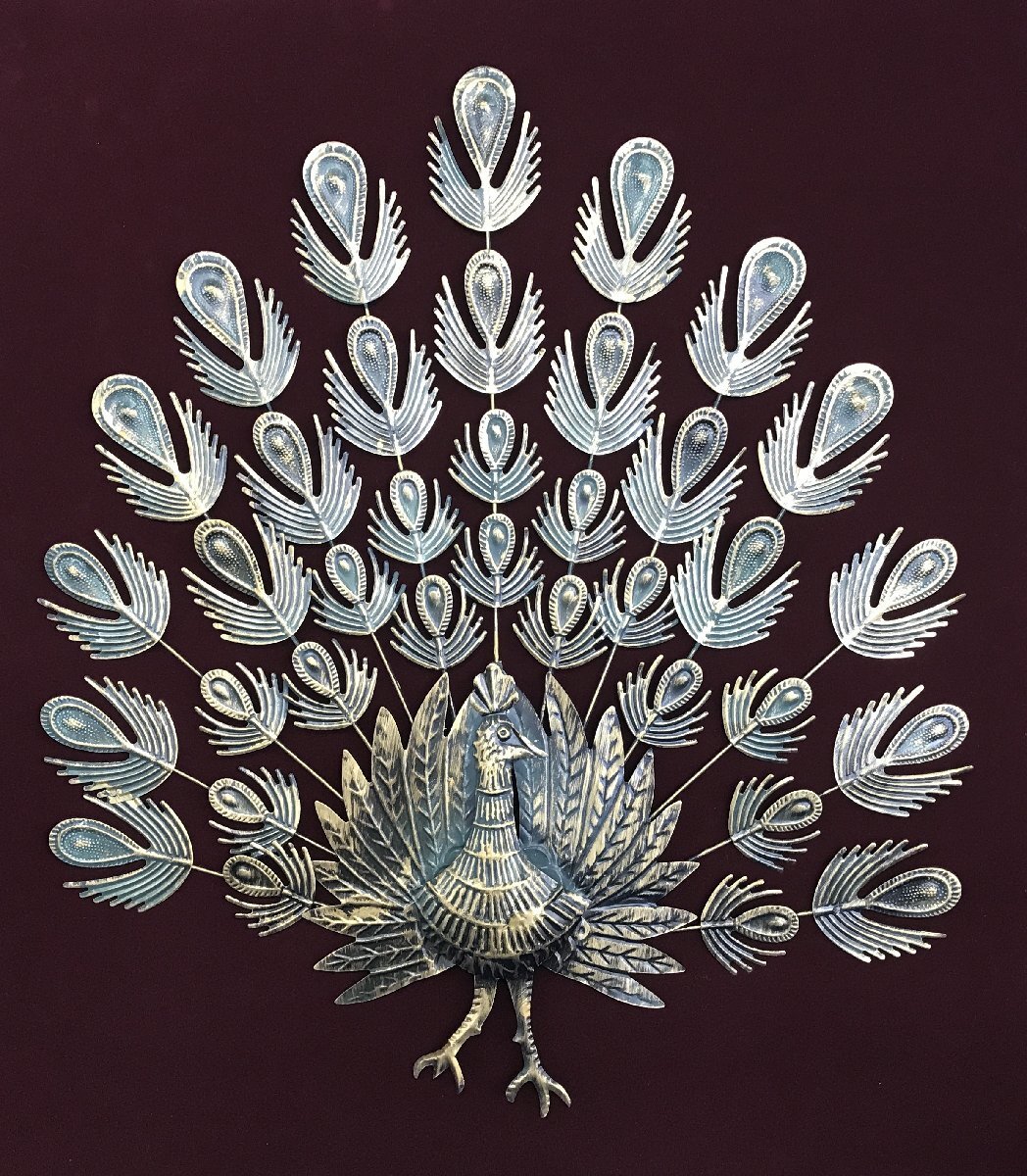 - ★41―022★ガラス額装 詳細不明 孔雀 /技法不明 彫刻 金属工芸 古美術 アンティーク ビンテージ レトロ 鳥 アート作品 [160]