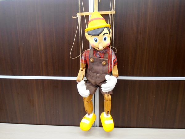 操り人形 ピノキオ マリオネット 昭和レトロ 人形の高さ約53.5㎝ 操り棒・糸付き 現状品 苫小牧西店