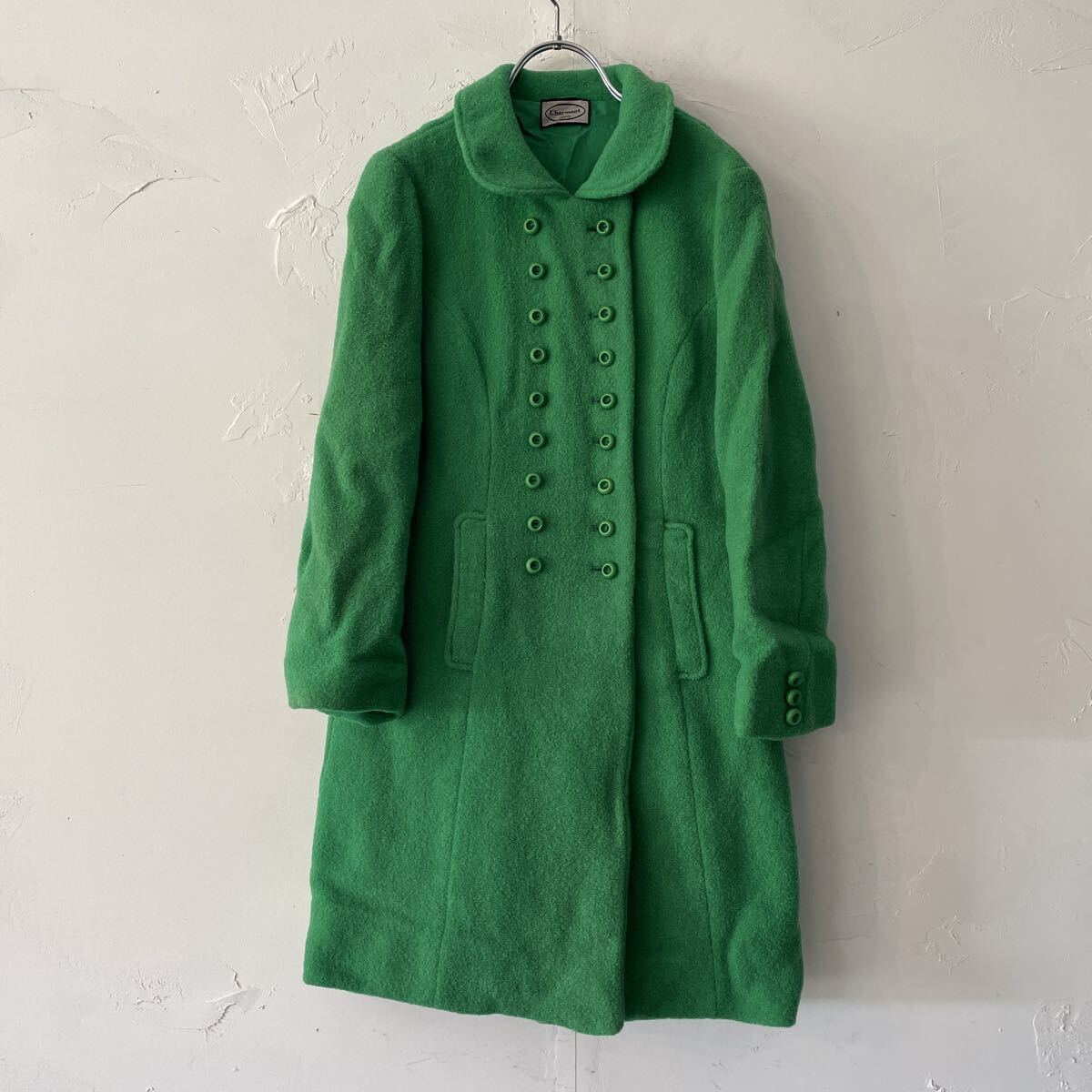 > ビンテージ 70s 鮮やかなグリーン たくさんのボタン ジャケットコート 4 ヴィンテージ 緑色 レディース レトロ 国産古着