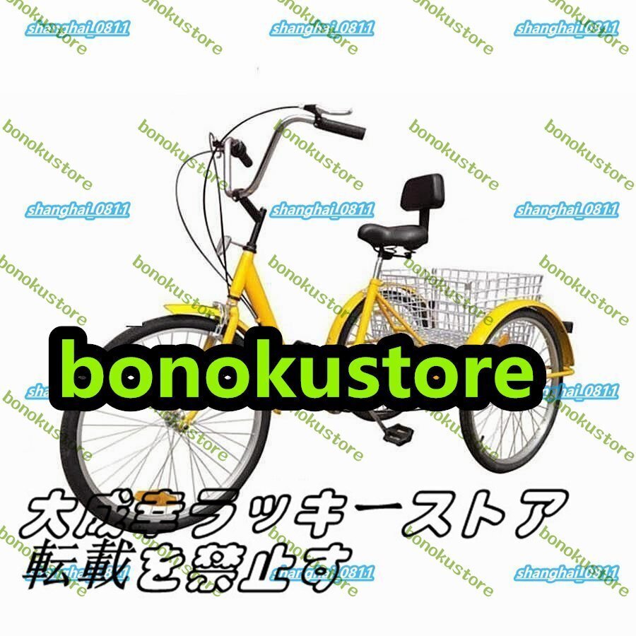 - 大人の三輪車三輪三ks自転車クルーザー7スピード、24インチホイール大人のトライク3輪自転車貨物貨物バスケット、女性、男性 イエロー