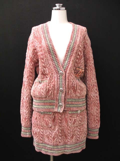 - 美品 シャネル 22AW ケーブルニット カーディガン スカート セットアップ ココマーク 38 P73535/P73533
